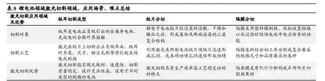 Heat impact control is still difficult, and UV lasers may replace traditional die cutting. According to the information on the official website of Suneng Electric, the melting point of the PP film and the PE film of the lithium-ion battery separator is different, the PE separator is about 130°C, and the PP separator is about 160°C. According to the prospectus of Inno Laser, in the fields of thin-film non-metallic material processing, high-energy ultraviolet photons directly destroy the molecular bonds on the surface of non-metallic materials, so that the molecules are separated from the object. This method does not produce high-heat reaction, so it is usually called For "cold processing", UV laser machines have irreplaceable advantages in the field of micro-processing. We judge that, in the current segment of diaphragm cutting, which is still mainly die-cutting, it is still difficult to control the thermal impact of laser cutting due to the lower melting point of the diaphragm. Ultraviolet laser may replace traditional die-cutting with the advantage of "cold processing".