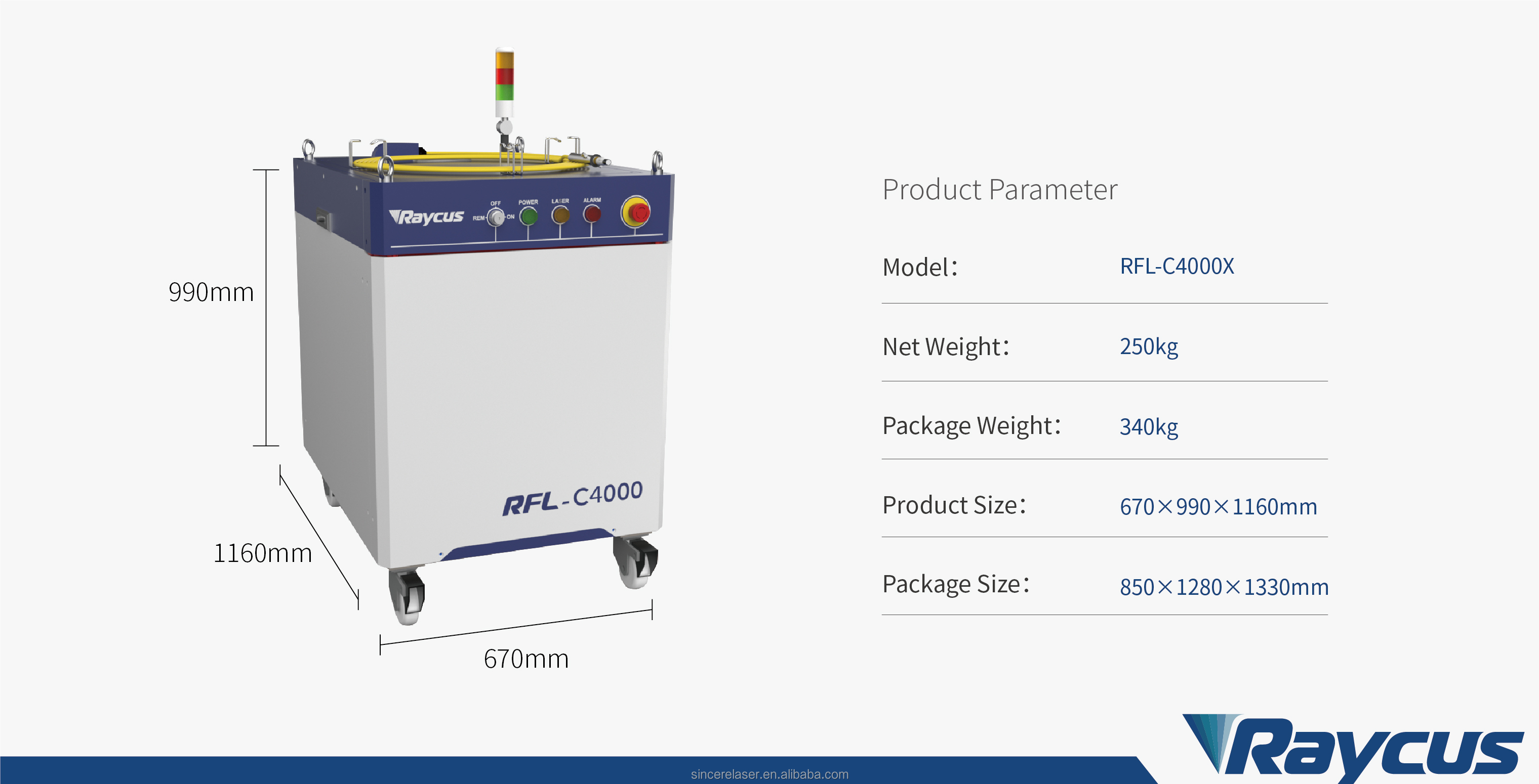 The Multi-module CW Fiber Lasers developed by Raycus ranges from 4,000W to 30kW, with high electro-optical conver-sion efficiency, excellent beam quality, high energy density,wide modulation frequency, high reliability, long service life,maintenance-free operation and other advantages. The product can be widely applied in welding, precision cutting,cladding, surface processing, 3D printing and other fields. Its excellent optical output performance make it easy to be integrated with robots for flexible manufacturing and 3D processing .
